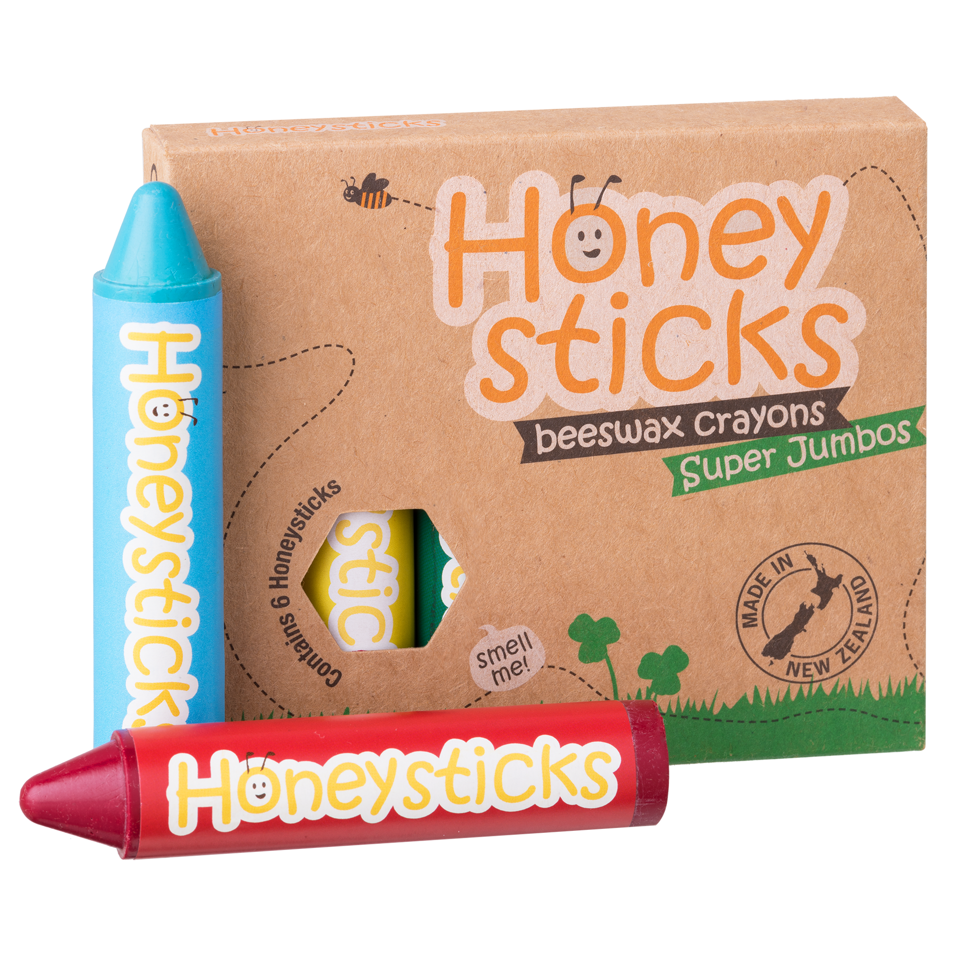 The perfect next step from Honeysticks Originals and Honeysticks Triangles, Honeysticks Super Jumbos are designed as a longer and thicker crayon to promote increased control with a developing pencil grasp in children. Handmade using 100% pure New Zealand beeswax and food-grade pigments for colour. Non-toxic and safe for toddlers and children, with no paraffin wax or cheap fillers. Honeysticks Super Jumbo crayons are easy for small hands to hold but hard for small hands to break! Wrapped to help keep hands clean. With 6 exciting colours, get creative and explore! Honeysticks food-grade colours easily bond to paper, poster or artboard. Sustainably made in New Zealand; created by families, for families.
