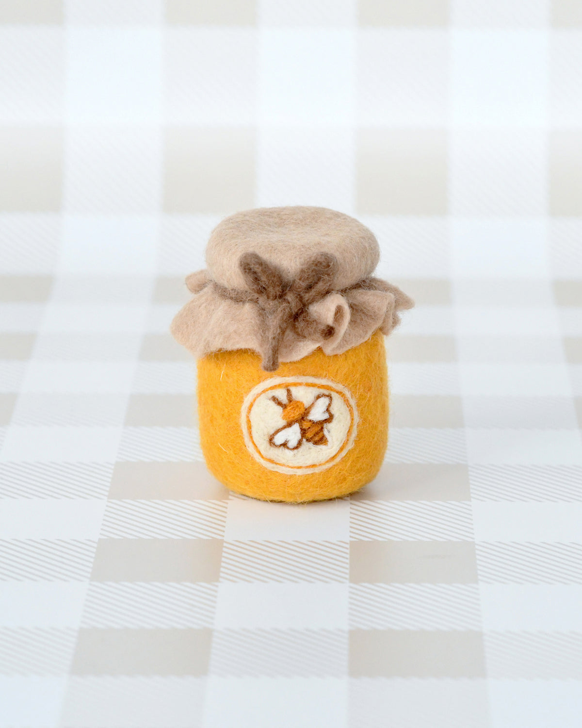 Drizzle a little magic into playtime with our Felt Honey Jar, a charming addition to your child’s pretend pantry or teddy bear tea party. Lovingly handmade from soft felt, this golden delight features a removable lid, inviting curious little hands to open and explore, stirring hours of imaginative storytelling and role play.