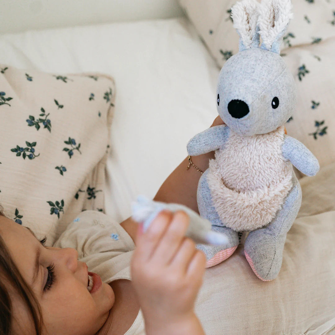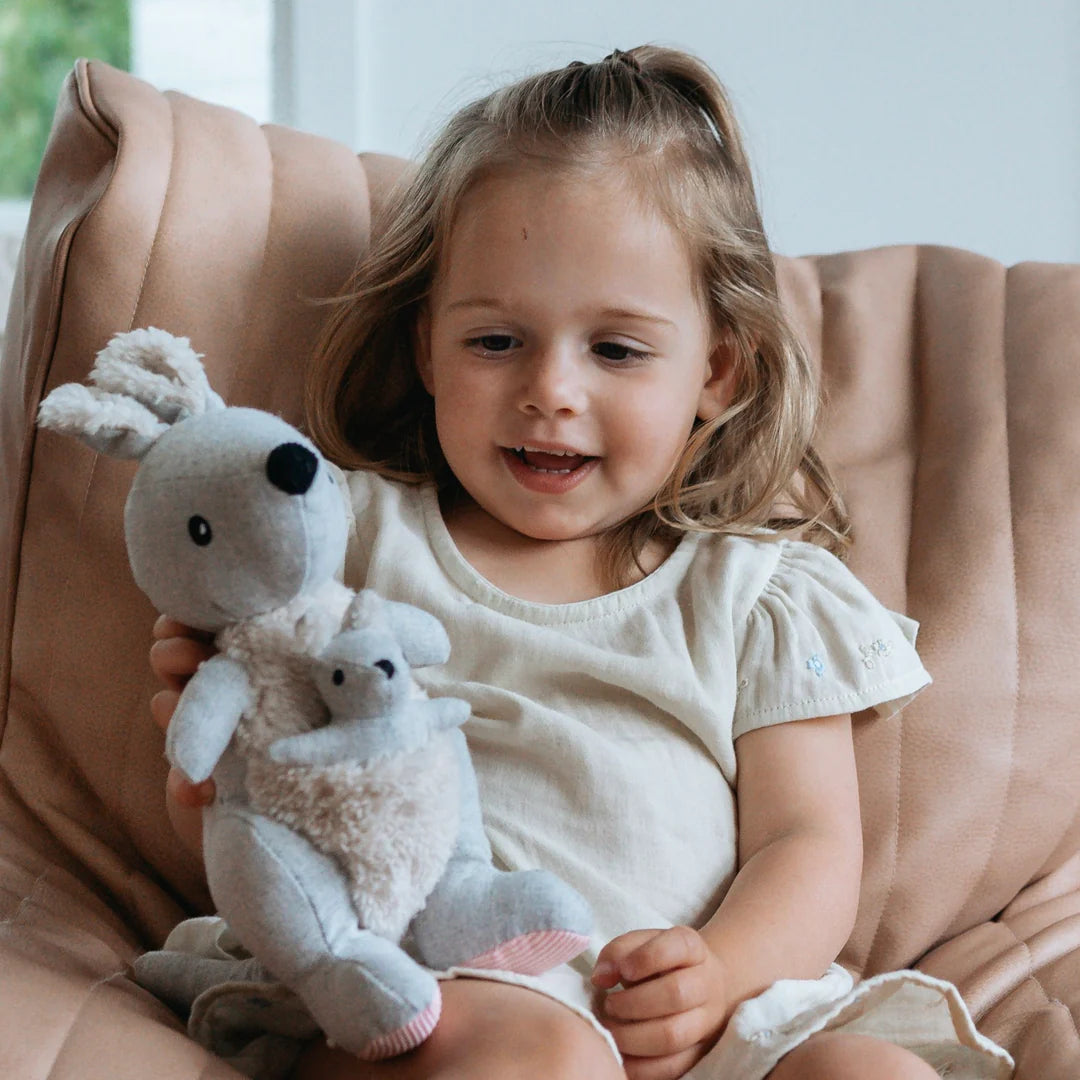 Glenda Kangaroo is the sweetest companion with a soft plush coat and a gentle rattle inside. A beautiful Aussie friend for cuddles, storytime, or a treasured gift for a little love.