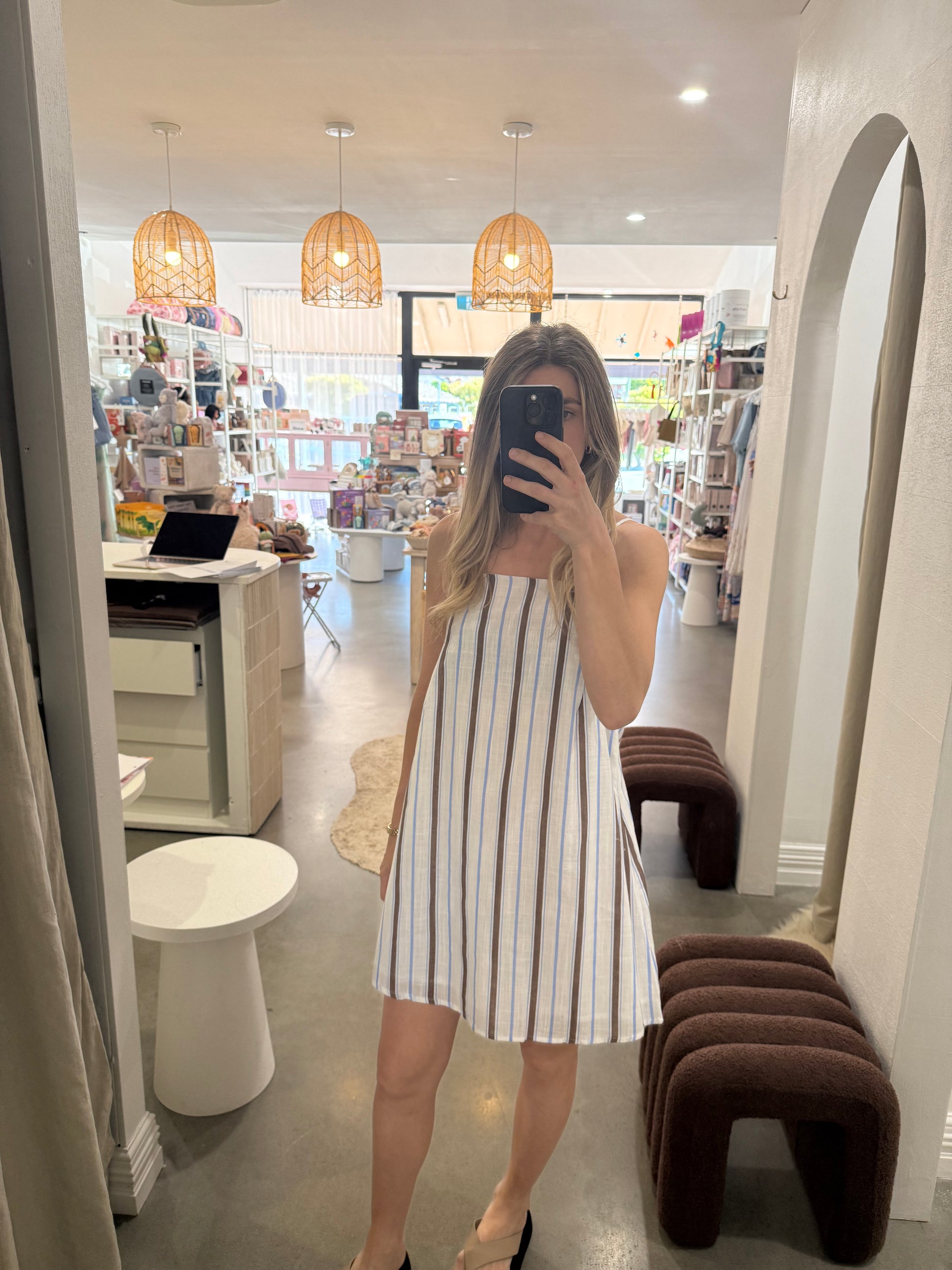 The Albie Swing Dress is your effortless, throw-on-and-go piece for warm days and slow moments. Crafted from 100% breathable cotton, Albie features soft coastal stripes, delicate adjustable straps and a beautifully floaty swing silhouette that moves with you.