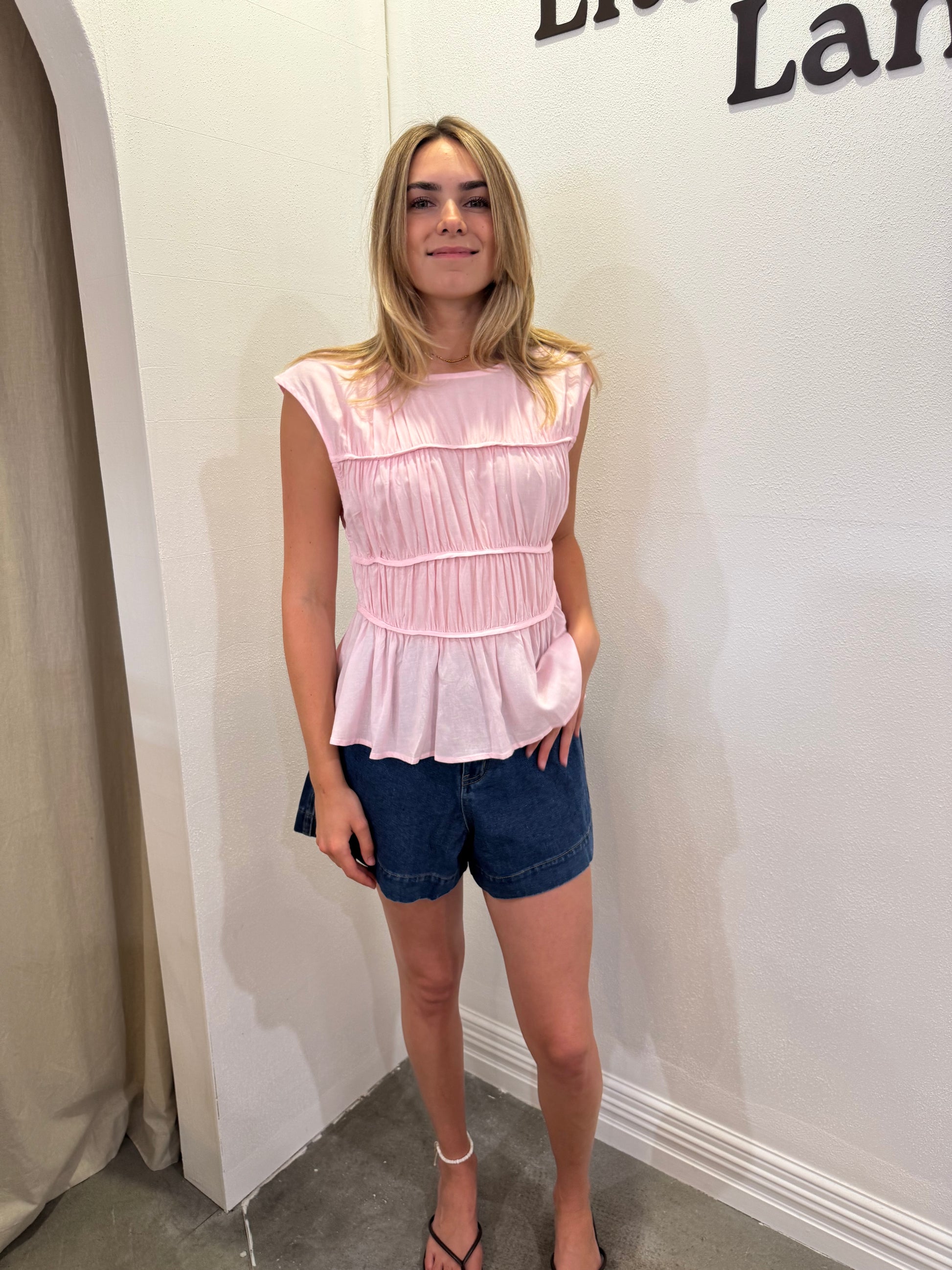 Soft, airy, and beautifully feminine — the Isola Top is an easy essential for the warmer months. Designed in a lightweight rayon-linen blend, it features subtle gathering through the bodice and soft tiered detailing that falls effortlessly from the waist.