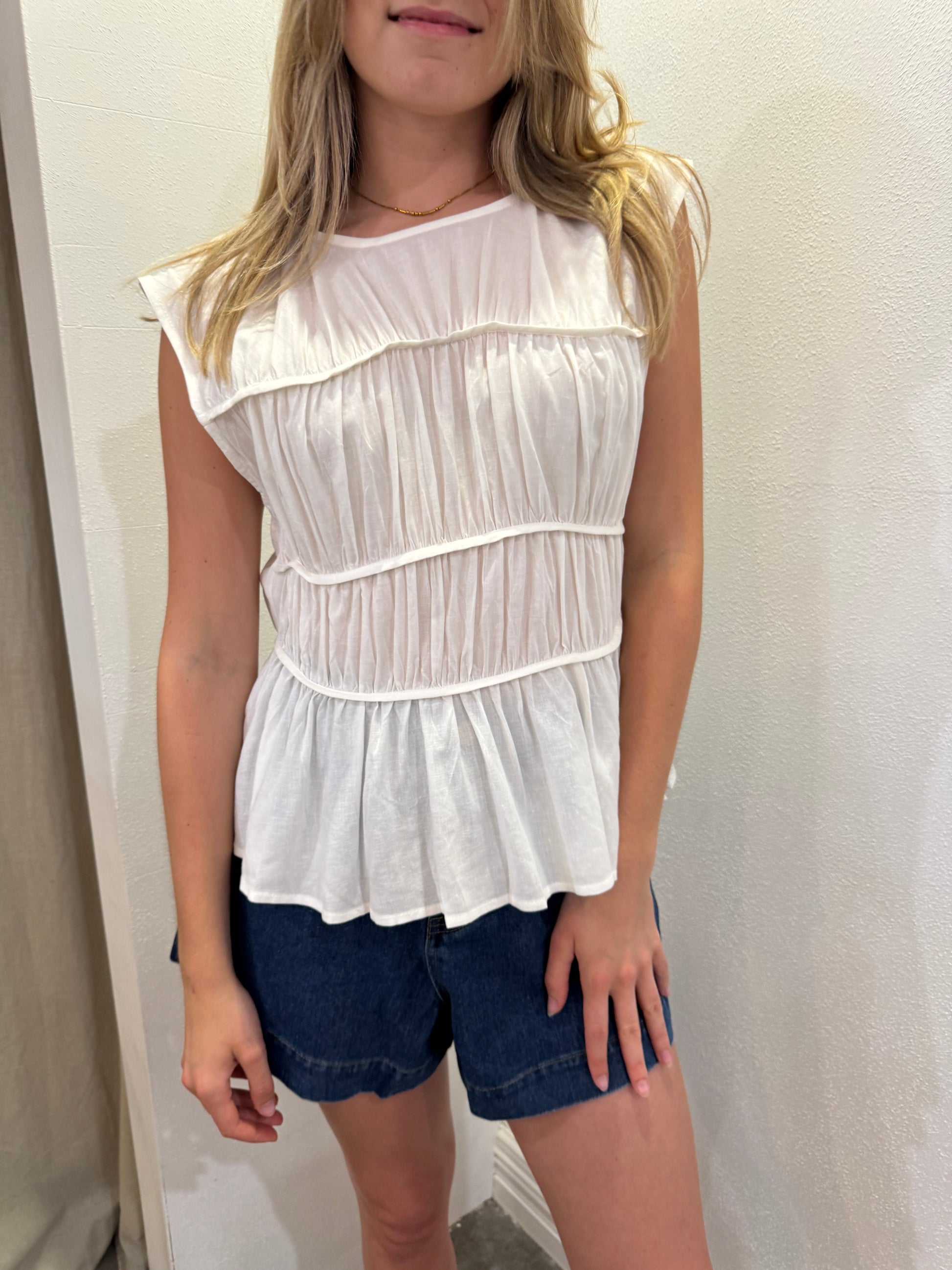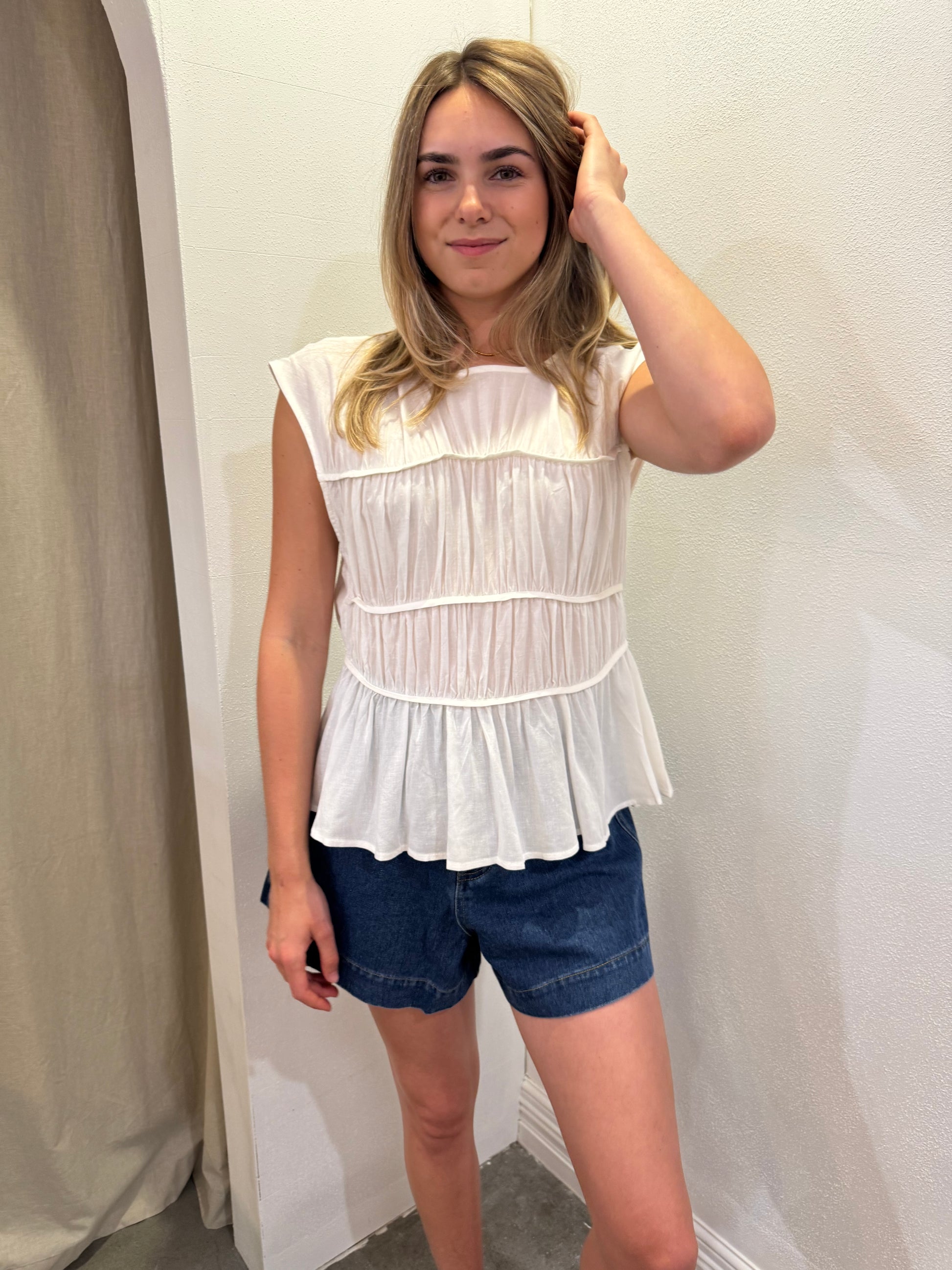 Soft, airy, and beautifully feminine — the Isola Top is an easy essential for the warmer months. Designed in a lightweight rayon-linen blend, it features subtle gathering through the bodice and soft tiered detailing that falls effortlessly from the waist.