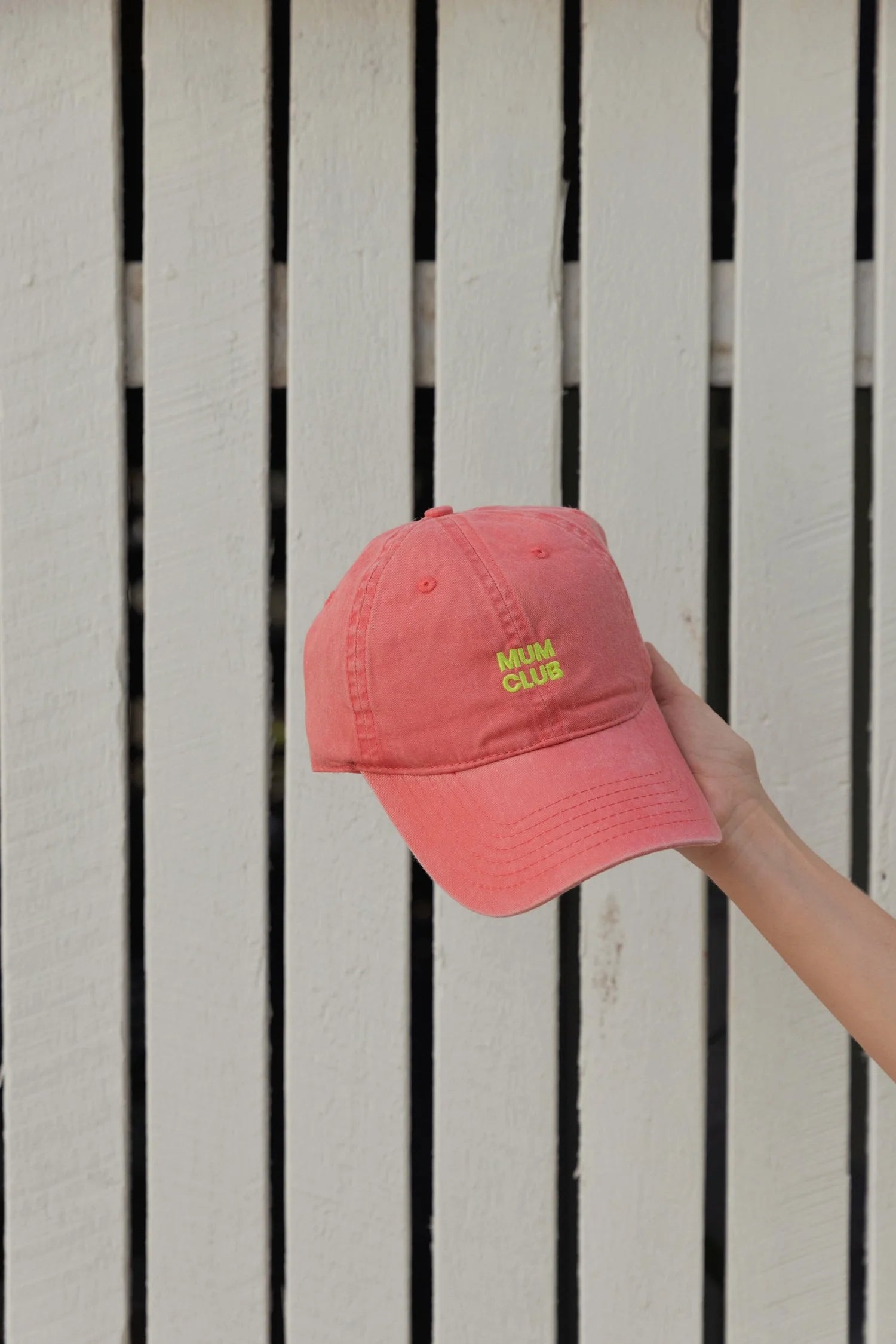 Hat details: 100% cotton. Faded strawberry hat (worn look) with neon yellow.