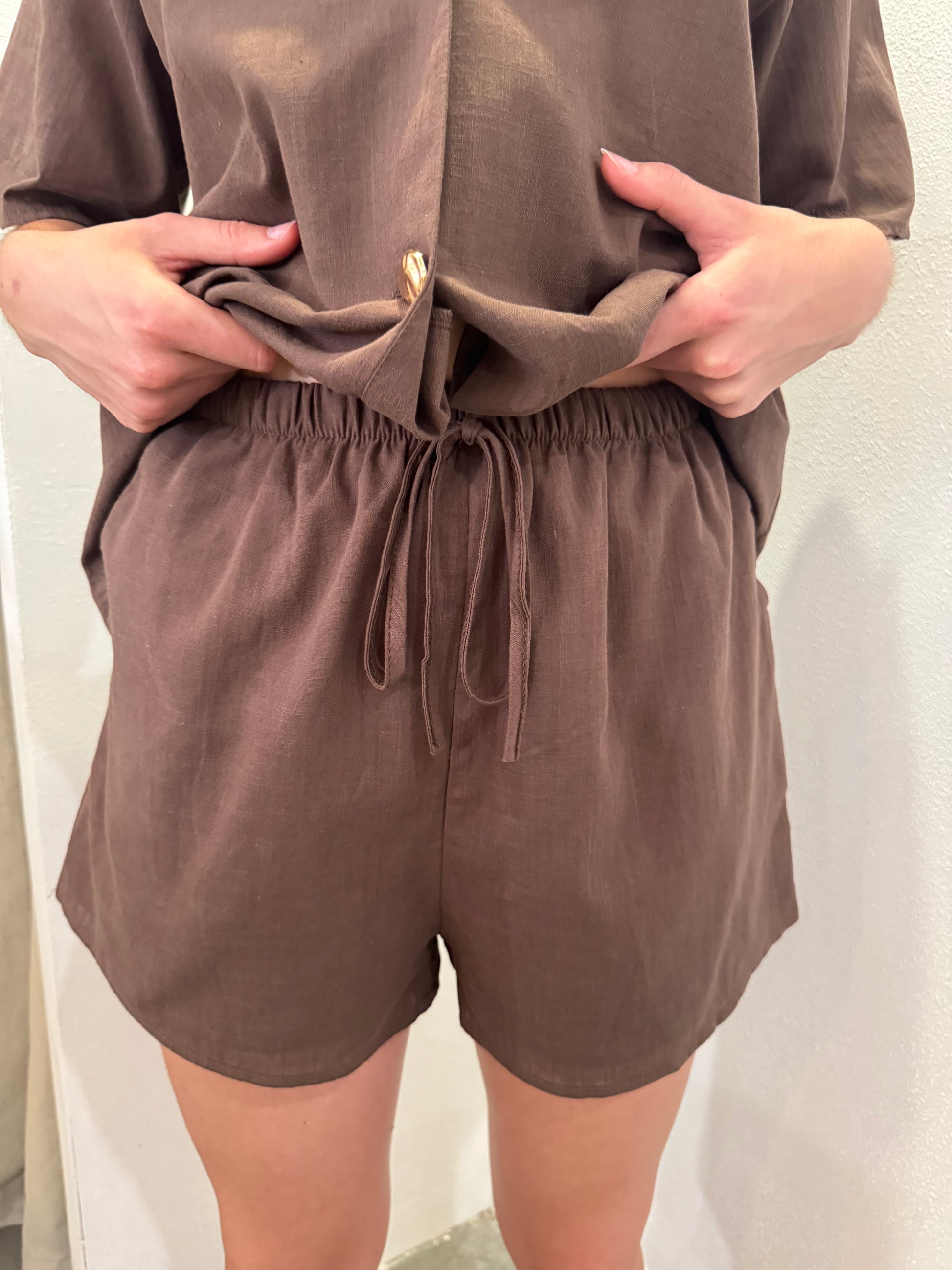 Relaxed tailoring meets coastal cool — the Sorrento Set is your effortless answer to polished summer dressing. Crafted from a breathable linen-cotton blend, this co-ord features a softly structured short-sleeve blazer with a single tortoiseshell button and matching elastic-waist shorts.