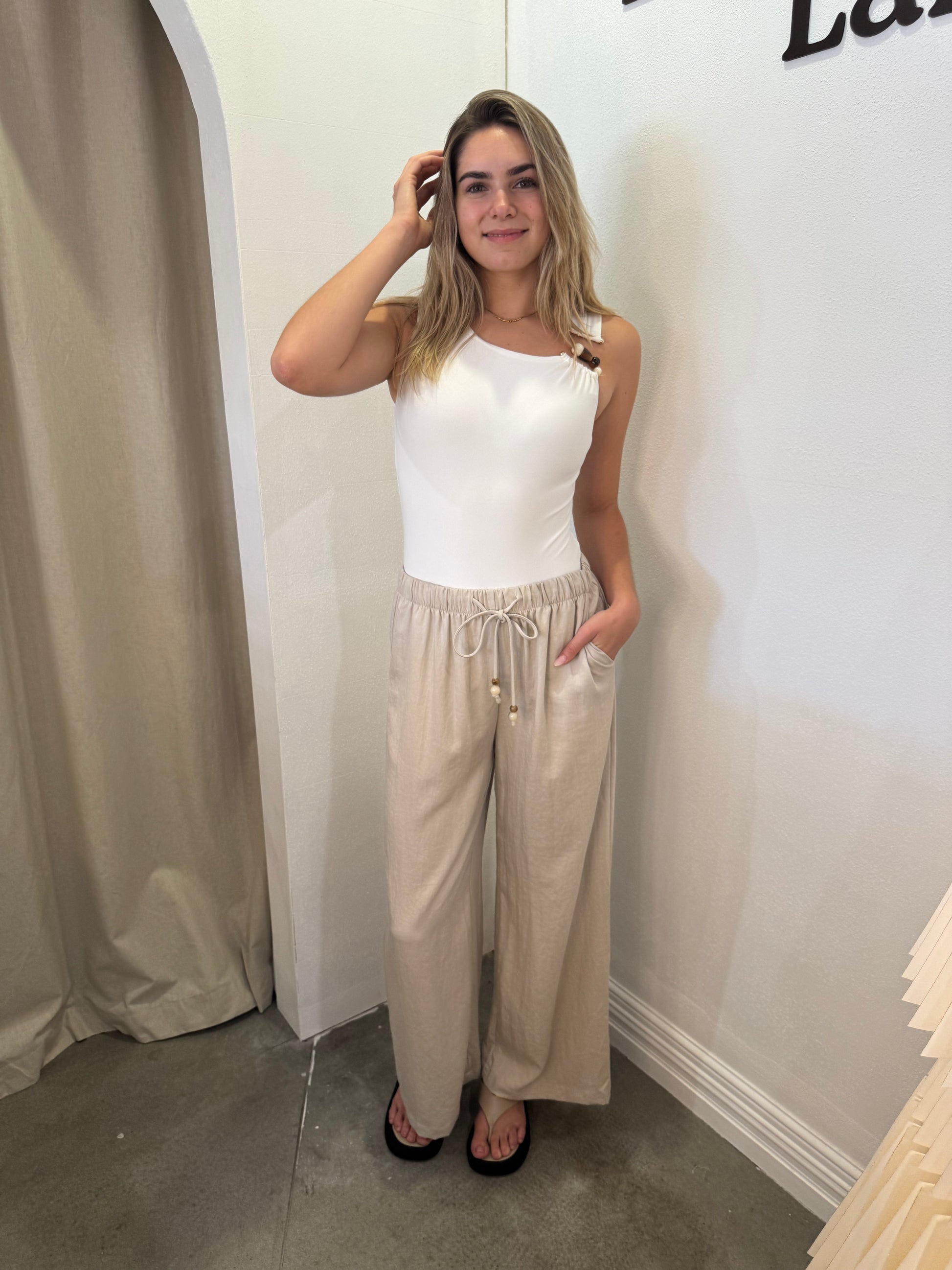 Lightweight and breathable, these pants offer an elevated alternative to loungewear — perfect for coastal weekends, coffee runs, or travel days.