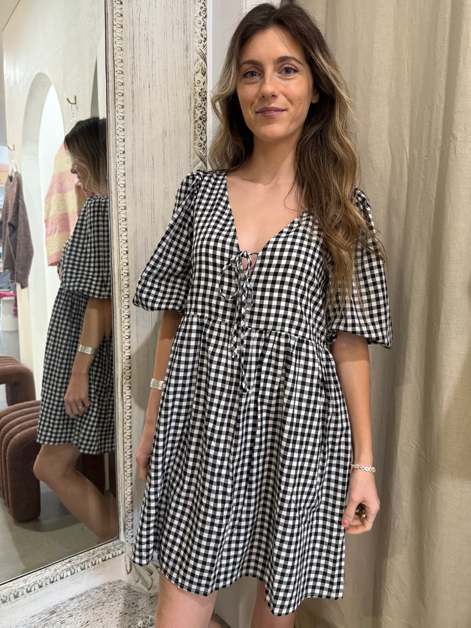 Sweet, simple and made for warm days — the Tully Dress brings timeless charm with its classic gingham check and floaty silhouette. The tie-front detail and soft puff sleeves add a touch of romance, while the cotton fabrication keeps things light and breathable. Pair with slides, sneakers or a straw hat for the ultimate easy outfit.