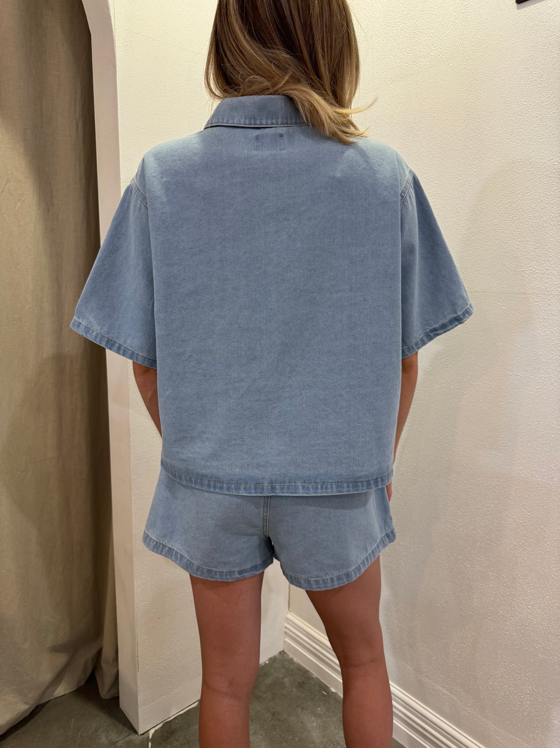 Effortlessly cool and endlessly wearable — the Lennon Denim Set brings a relaxed take on the classic denim look. Crafted from soft, lightweight cotton denim, this matching shirt and shorts combo is designed for laid-back days with a touch of polish.