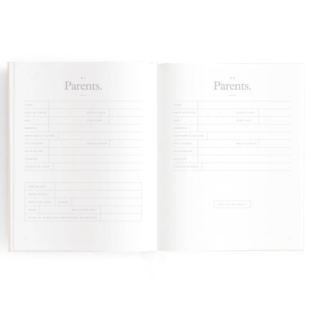 A beautiful keepsake for the whole family to enjoy. Includes: important milestones and firsts, family profiles, family tree and travel map, playgroup and daycare through to kindy and school years, time capsule, nicknames and celebrations, pets, friends, birthdays and more.