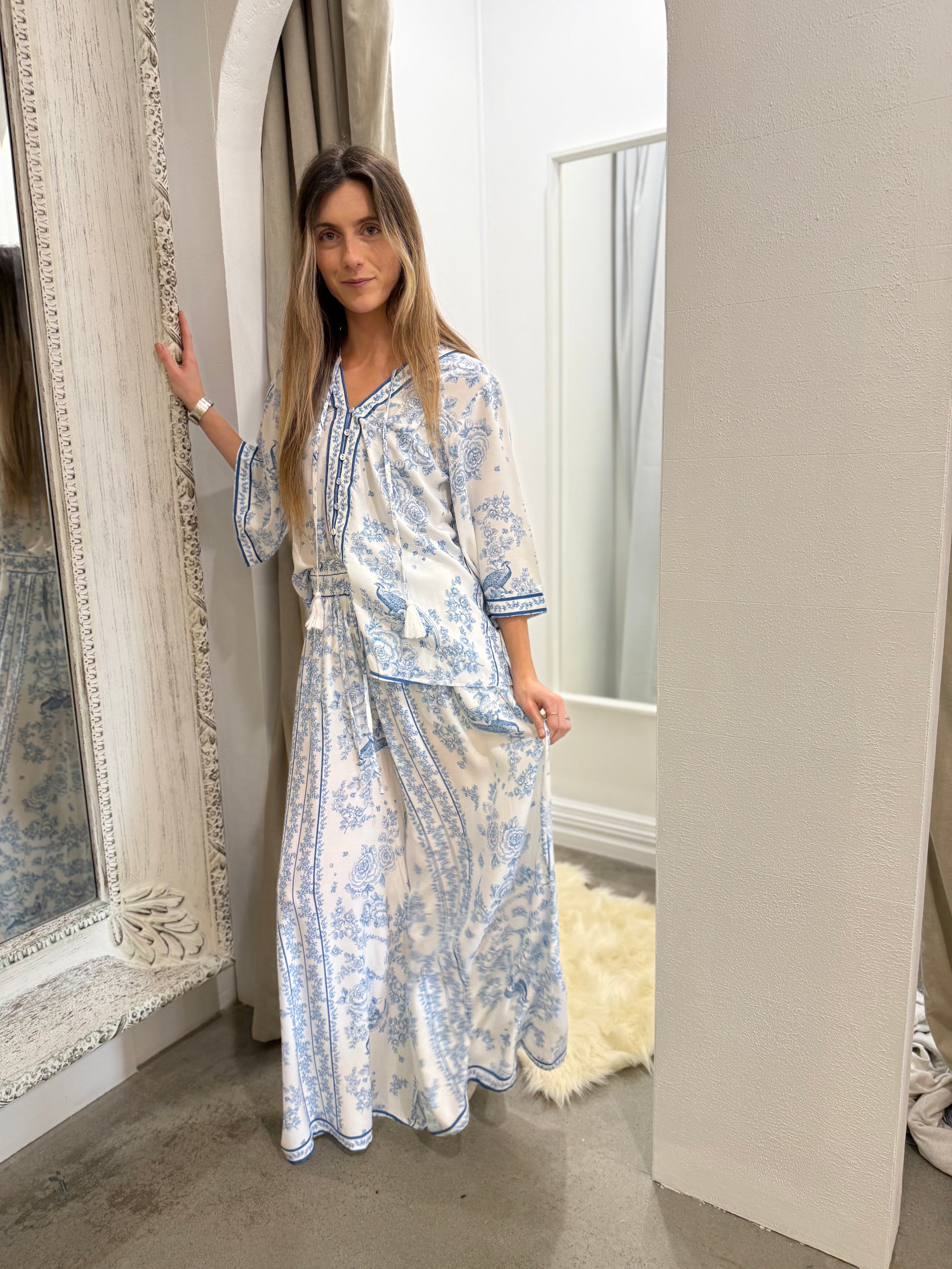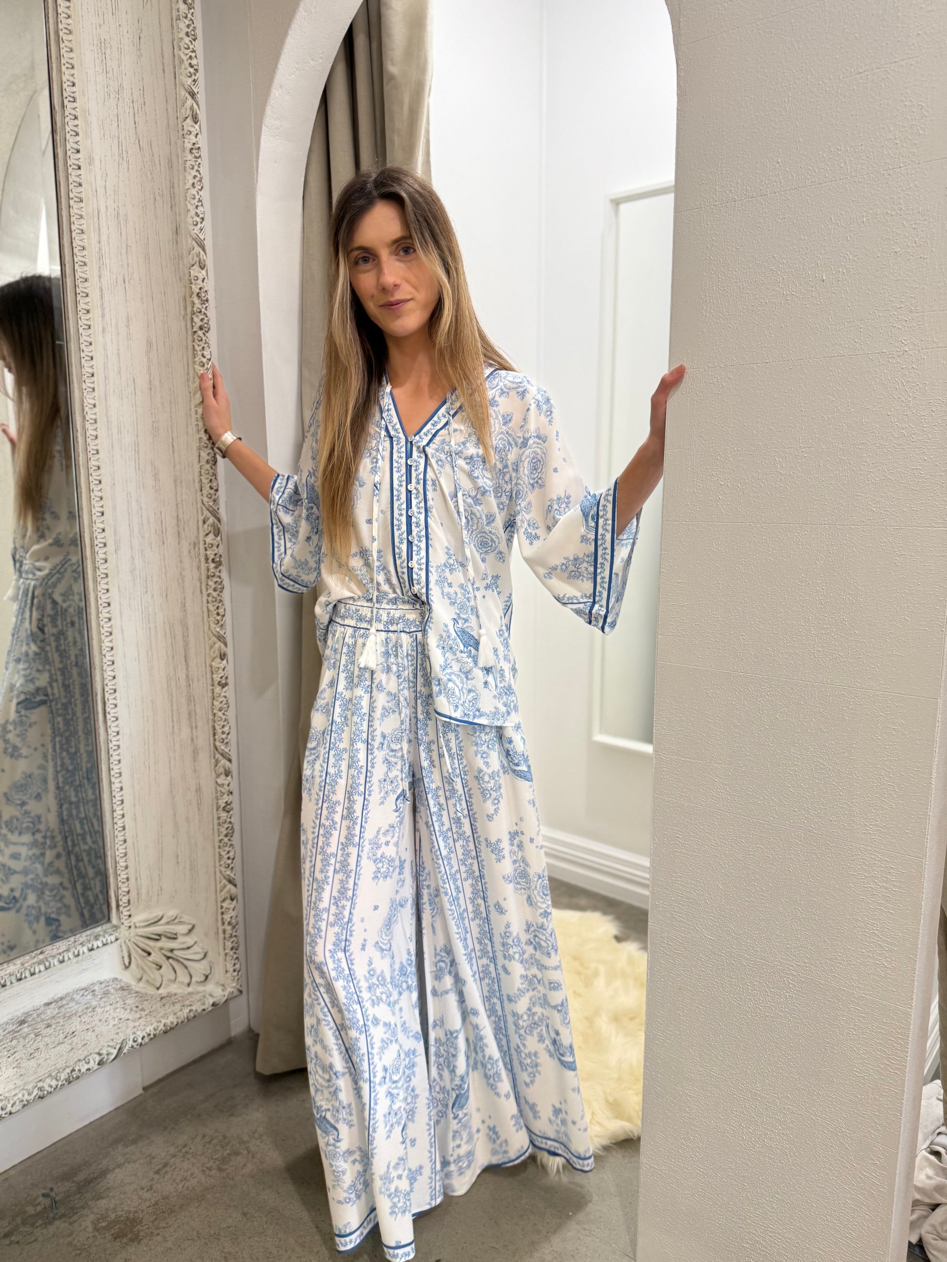 Soft, flowy and effortlessly wearable — the Paloma Pants are designed for comfort and ease, with a gentle wide-leg shape and beautiful blue floral print. Style them with a simple white tank, a lightweight knit or pair them with the matching Paloma Blouse to complete the set.
